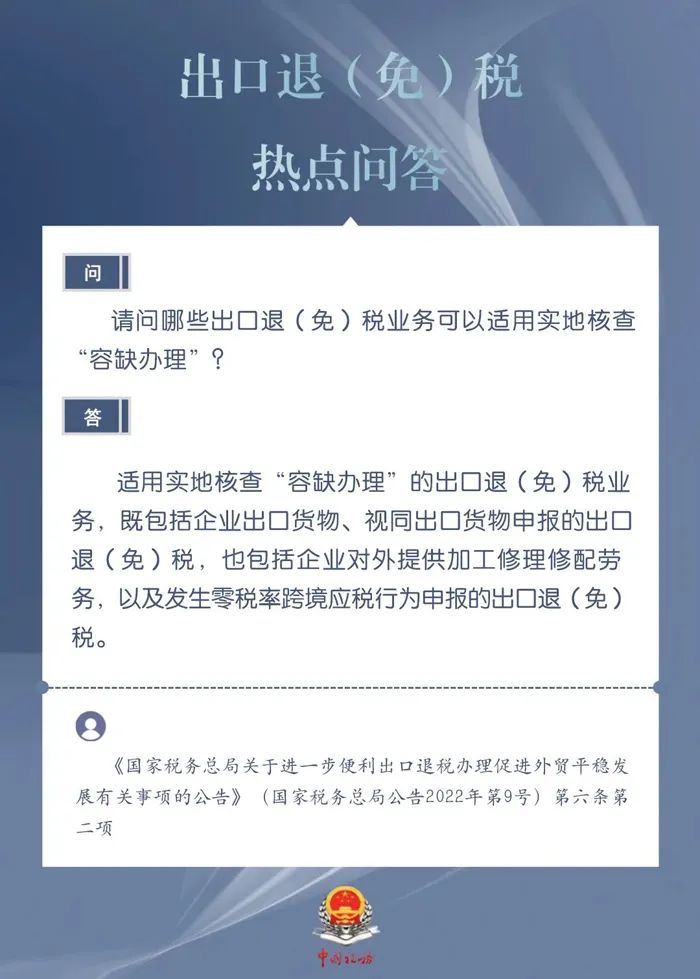 哪些出口退(免)税业务可以适用实地核查“容缺办理”?