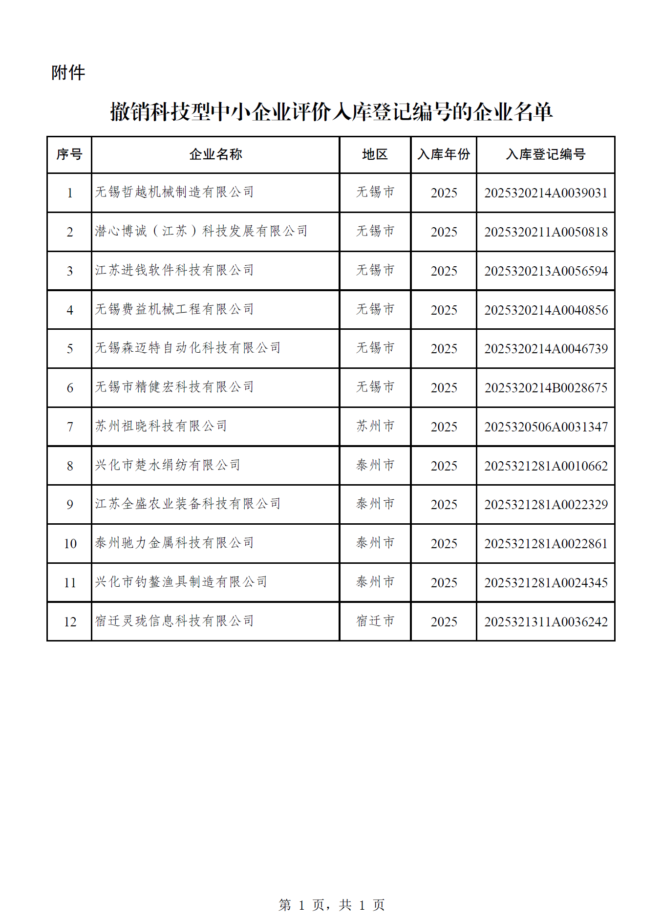 江苏省科学技术厅关于撤销无锡哲越机械制造有限公司等12家科技型中小企业入库登记编号的公告