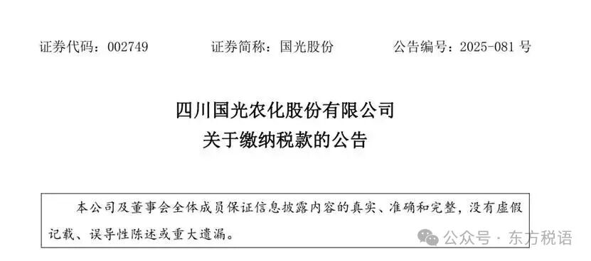 四川国光农化股份有限公司(以下简称“公司”)下属子公司四川国光农资有限公司、四川国光园林科技股份有限公司根据主管税务机关的通知,需缴纳前期享受的西部大开发企业所得税优惠税款及滞纳金约 6,000 万元。本次缴纳不涉及行政处罚。