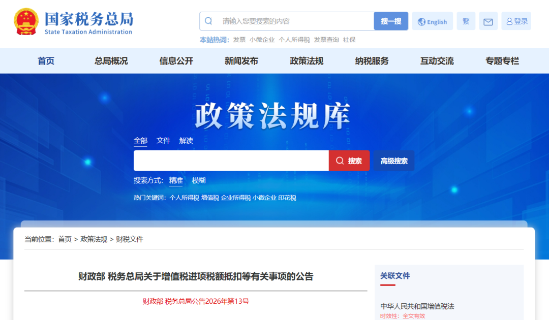 财政部 税务总局公告2026年第13号