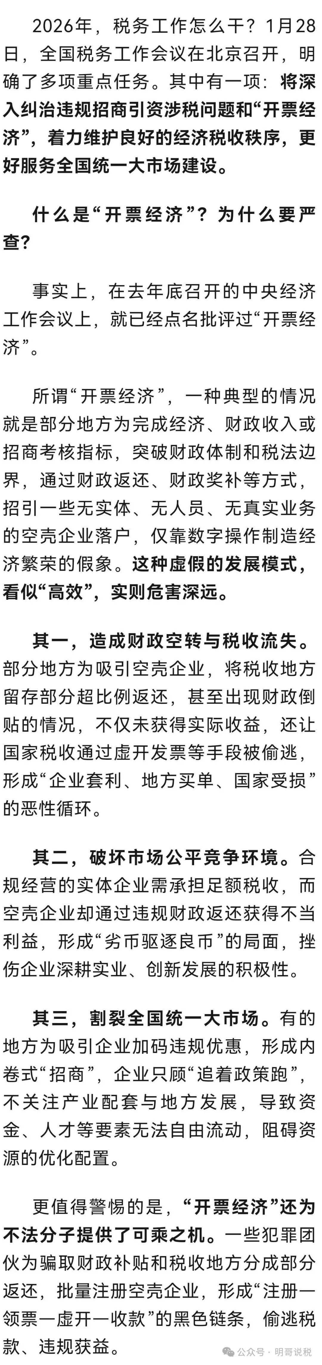 加力纠治违规招商引资涉税问题!奉劝:别把“开票经济”当“发展经济”