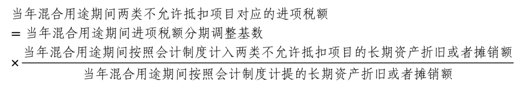 当年混合用途期间五类不允许抵扣项目对应的进项税额=当年混合用途期间两类不允许抵扣项目对应的进项税额+当年混合用途期间三类不允许抵扣项目对应的进项税额