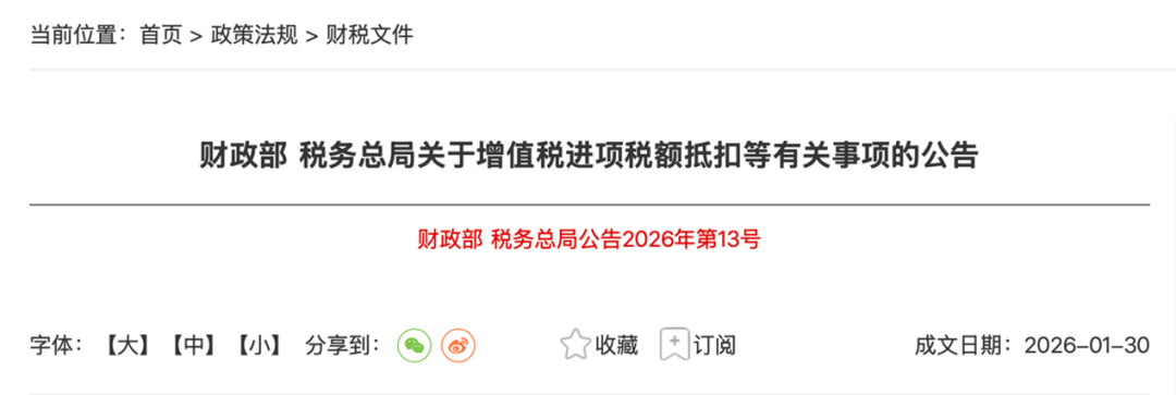 2026年1月30日,财政部、税务总局联合发布《关于增值税进项税额抵扣等有关事项的公告》(财政部 税务总局公告2026年第13号)。其中第二条对资产重组的增值税政策作出了进一步明确,在延续原有核心政策——即符合条件的不征收增值税——的基础上,细化并完善了适用条件与法律效果,主要体现在以下三个方面: