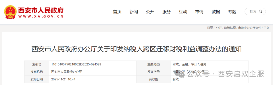 《西安市纳税人跨区迁移财税利益调整办法》已经市政府同意,现印发给你们,请认真贯彻执行。2021年1月7日市政府办公厅转发市财政局、市税务局《西安市纳税人跨区县迁移财税利益调整办法》(市政办发〔2021〕2号)同时废止。