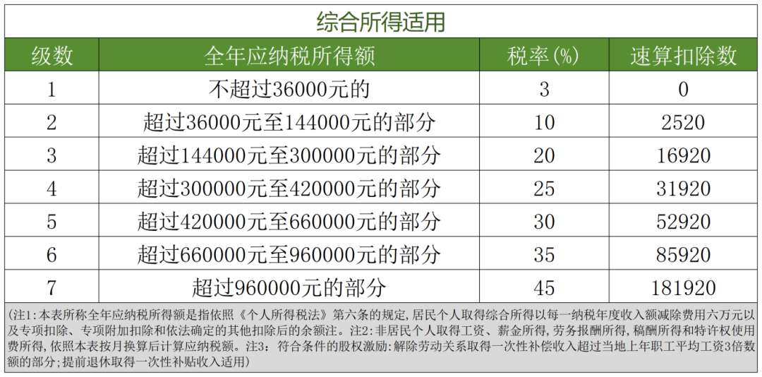 3、综合所得税率表(个税汇算清缴时适用)