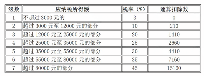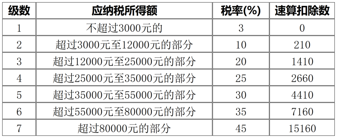 (注:适用税率,以全年一次性奖金收入除以12个月得到的数额对照月度税率表确定)