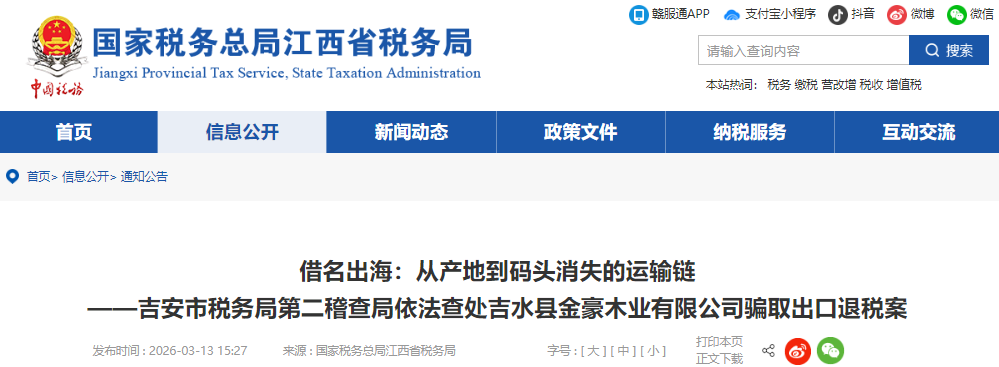 ——吉安市税务局第二稽查局依法查处吉水县金豪木业有限公司骗取出口退税案