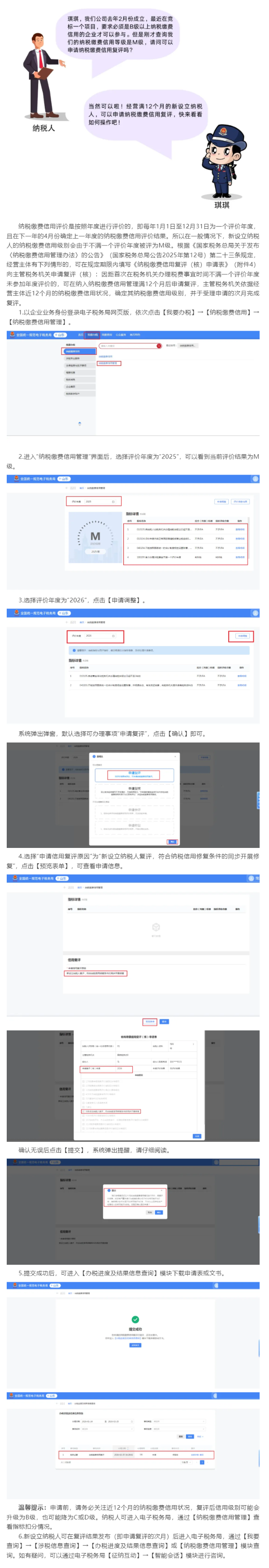 新设立纳税人如何在电子税务局申请纳税缴费信用复评?